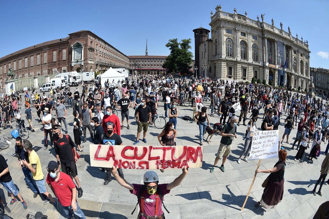 Attrici, lirici, ballerini, comici, coreografi, cantanti, deejay, tecnici e maestranze, doppiatori, sceneggiatori e registi, sarti e truccatori, orchestrali, acrobati, stunt-man, giocolieri e trampolieri sono scesi nelle piazze d’Italia per chiedere più interventi a favore dello spettacolo dal vivo e della cultura: “Serve ripartire”. “Quasi tutti noi – hanno ricordato – lavoriamo nella precarietà e dichiariamo da oggi lo stato di agitazione permanente”.