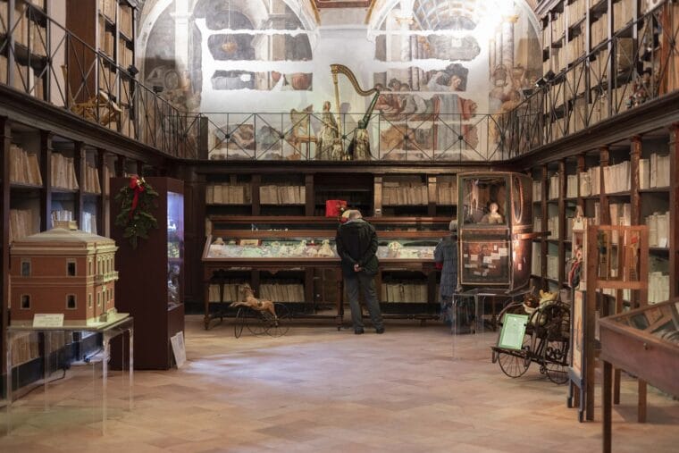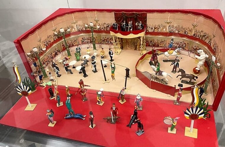 Lasciamo le bambole e approdiamo alle altre declinazioni del mondo del gioco: innumerevoli Pinocchio di legno occhieggiano dalle vetrine o dall’esposizione; automi sbalorditivi nelle loro movenze perfette testimoniano il grado di innovatività anche in epoche remote; giochi da tavolo predecessori dei moderni videogiochi, ne anticipano le regole; marionette storiche, come i sette nani di Podrecca, famosissimo artista del teatrino. E poi, macchinine, trenini, aeroplanini di ogni genere e qualità, teatrini, un circo e il mitico Musichiere, pupazzo cult di fine anni ‘50.