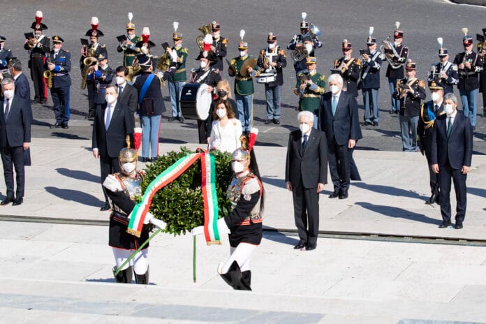 (Roma)-Il presidente della Repubblica Sergio Mattarella ha deposto una corona all’Altare della Patria in occasione della festa della Repubblica che, per il secondo anno consecutivo, si celebra senza cerimonie aperte al pubblico e senza la tradizionale parata militare in via dei Fori imperiali a causa del Covid. Ad attendere il capo dello Stato c’erano però in piazza Venezia, dietro le transenne, centinaia di cittadini e turisti, che hanno assistito alla breve cerimonia.
