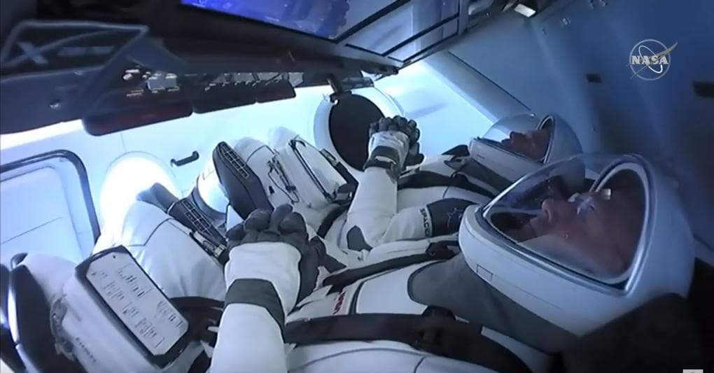 Lanciata per conto della Nasa dall’azienda di Elon Musk, la capsula sta portando verso la Stazione Spaziale i veterani della Nasa Doug Hurley (54 anni) e Bob Behnken (50) nella missione Demo2, che apre la via ai voli di serie della Crew Dragon