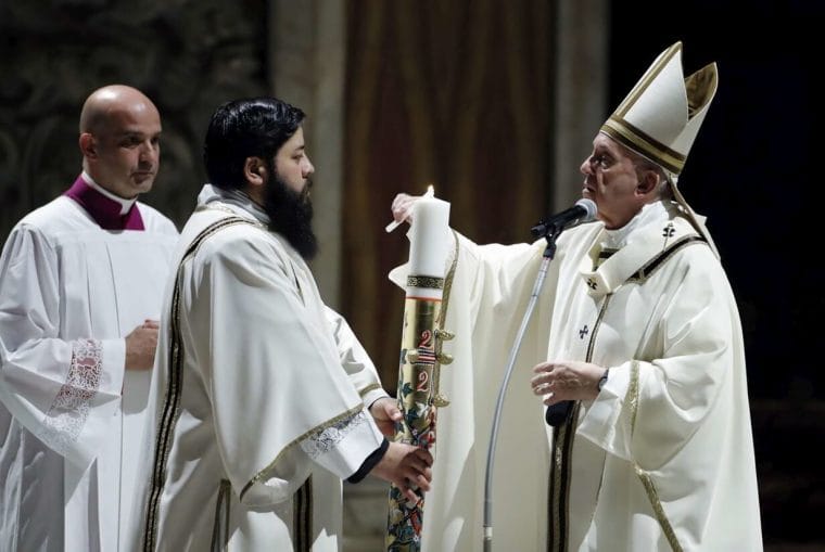 (Vaticano)- “Non cediamo alla rassegnazione, non mettiamo una pietra sopra la speranza. Possiamo e dobbiamo sperare perché Dio non ci ha lasciati soli”. Lo dice Papa Francesco nell’omelia della Veglia Pasquale nella Basilica di San Pietro. “Tutto andrà bene, diciamo con tenacia in queste settimane ma anche la speranza più audace può evaporare. La speranza di Gesù è diversa. Dio è più grande. Il buio e la morte non hanno l’ultima parola”.