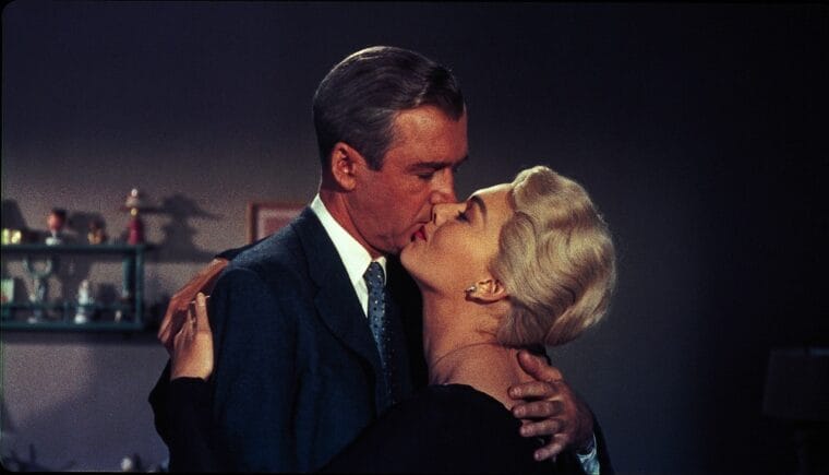 Improbabile che il genio del regista, un po’ Churchill un po’ Buddha, si riferisse all’Otello di Shakespeare coi suoi tocchi di verde qua e là lungo tutta la pellicola (colore che per altro nel cinema muto simboleggiava la speranza e il rinnovamento). È curioso come i latini considerassero il termine “gelosia” nell’accezione attuale – il desiderio di preservare l’oggetto conquistato – oltre che in quella di “invidia” – la tensione morbosa al raggiungimento di qualcosa che non si possiede –. Se la gelosia è un “mostro dagli occhi verdi” che induce alla pazzia, l’intera pellicola può essere intesa in due sfumature. La prima – l’invidia –, in cui Stewart non vuole farsi imprigionare dalla finzione e cerca di convincere Madeleine che è vera. E la seconda – la gelosia –, dove Stewart cade con tutte le scarpe nella fiction e vuole che la realtà si pieghi alla sua immaginazione. Come se la realtà fosse un grande film.