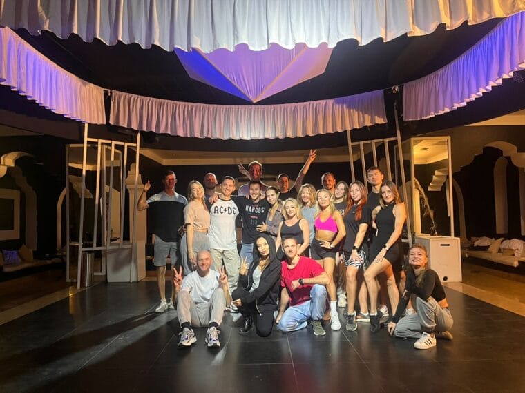 “Attualmente, sto collaborando con un gruppo di artisti acrobatici americani. Provengono dalla prestigiosa tradizione circense della grande Moira Orfei e sono composti da otto professionisti altamente qualificati che presentano uno spettacolo di acrobazia pura, davvero straordinario e mozzafiato. La mia sfida consiste nel farli ballare, insegnando loro i movimenti coreografici. Questa rappresenta per me una nuova avventura professionale estremamente interessante”.
