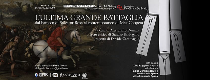 Il 27 maggio inaugura alla Baccaro Art Gallery (Pagani, Salerno) la mostra L’ultima grande battaglia – dal Barocco di Salvator Rosa al contemporaneo di Max Coppeta, a cura di Alessandro Demma.Baccaro Art Gallery e la Fondazione De Chiara De Maio
