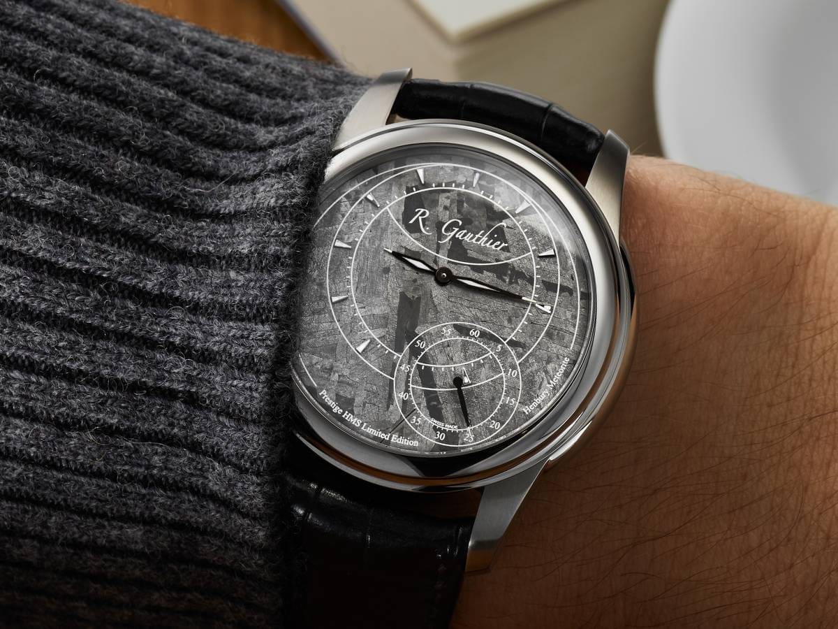 A prima vista, l’occhio viene catturato dai motivi geometrici degni dei riflessi di Pierre Soulages di queste fette di spazio minerali. Come Siderite, un meteorite ferroso, usato da Rolex per ottenere non un quadrante, ma solo la luna della sua Cellini Moonphase. Le figure di Widmanstätten, tipiche di questa pietra, sono rivelate da bagni di acido nitrico e alcool etilico, gli unici in grado di far apparire questi schemi letteralmente extraterrestri. Questa è tutta la magia di queste pietre che non lo sono, la cui lega a volte ha reagito in modo sorprendente al freddo come la fusione per creare modelli unici. “L’uso del meteorite è relativamente costoso, afferma Armand Billard.Ma il materiale è superbo, con una bella storia da raccontare: quando sei un appassionato di tempo, dire che un meteorite vecchio di miliardi di anni viene usato per spogliare il tempo è magico. “