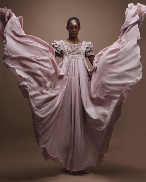 Meninos Rei Volumi, trame e tanta opulenza sono le idee alla base della costruzione dei pezzi presentati nella collezione “Meu Ori é a minha voz” (Il mio Ori è la mia voce), che allude a re e regine del continente africano, definita da colori vivaci di stampe e motivi. Il tessuto dalle trame africane continua a essere protagonista dello stile del brand insieme al patchwork. La novità di questa collezione è il lancio delle stampe, che rappresentano i princìpi e parlano della storia del Paese. Le stampe sono state ideate e firmate da Hori, designer di Estúdio Agá a Bahia. Le scarpe sono di produzione artigianale a opera dell’artista Lucas Lemos del marchio Tsuru, di Sergipe. I marsupi, le borse, le bucket bag e le pochette sono stati disegnati da Vinícius Carmezim del marchio Ziê, di Bahia. I balangandã e le corone sono stati forniti dall’istituzione religiosa Ile Dé Odé. Il concetto alla base del design delle collane è stato sviluppato da Kelba Deluxe e gli orecchini e gli anelli sono stati disegnati da Luana Rodrigues, designer di Bahia.