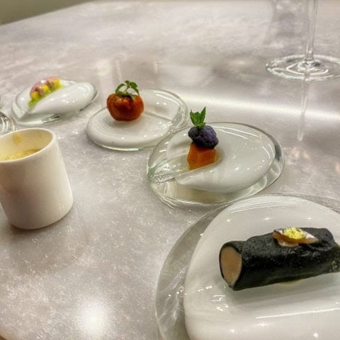 Ho letto che servi il tuo antipasto di crudo in scenografici piatti in vetro di Murano che hai disegnato personalmente, sei anche un artista?