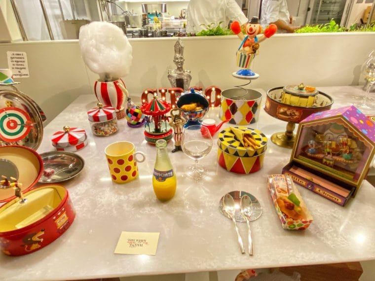 Beh, quantomeno ci provo. Il mio antipasto arriva a tavola presentato in 8 piatti in vetro di Murano progettati da me. Sai, mi piace assai l’arte e anche disegnare e porto questa passione e il mio estro anche nel ristorante, si!