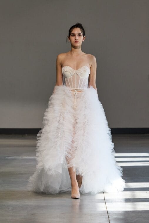 TUTTROSTYLE Ispirata dai vivaci fiori del suo giardino, la designer Tatsiana Trafimenkava ha creato la collezione “Flowers”, dove, il concetto di fragilità è messa a fuoco mostrandosi negli abiti modellati attraverso forme di leggerezza, illustrati in dettaglio, in intrecci di petali, godet, rosette e ruches, dove è possibile riconoscere la femminilità in ognuno dei fiori, tanto naturale quanto delicato. La combinazione di colore e le texture dei tessuti hanno creato una spettacolare armonia sottolineando la femminilità e la bellezza di ogni donna.